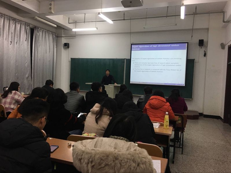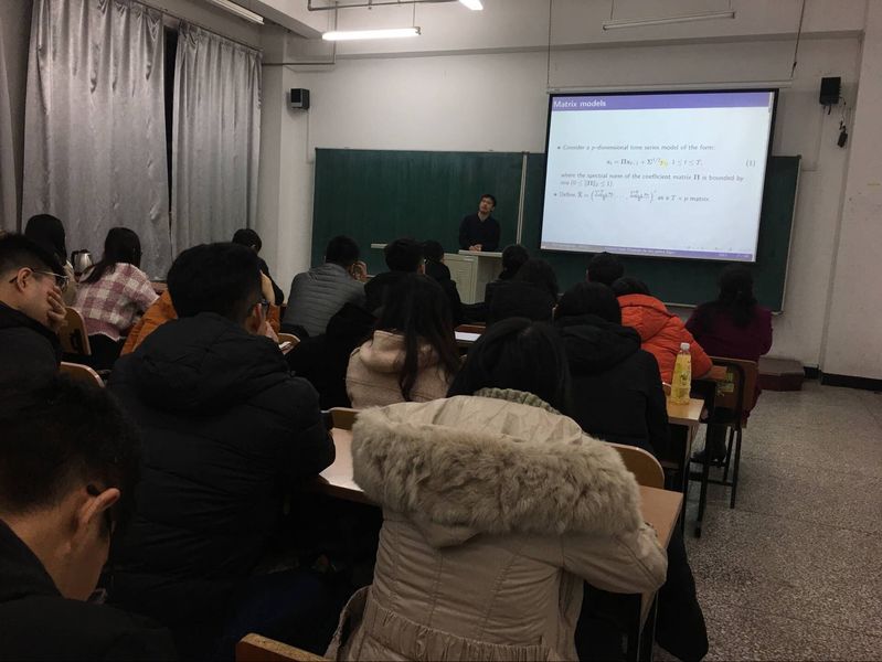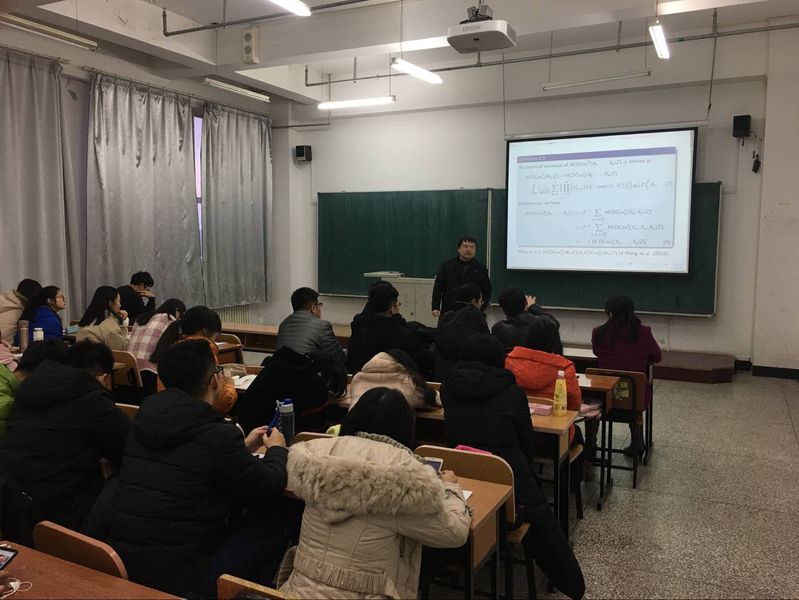 潘光明老师就dimension在时间序列中平稳性的检验的重要性开始报告,分平稳和非平稳两种情况展开讨论,从低维到高维进行。针对理论和实践后得到的结果进行了详细的讲解。潘老师在回答同学问题的基础上,也鼓励同学们努力学习,坚持脚踏实地的学习理论知识。