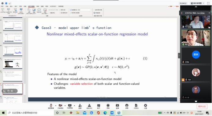 2021年5月 21日下午 3点,南方科技大学统计与数据科学系史建清教授应邀通过腾讯会议的方式为红杏视频