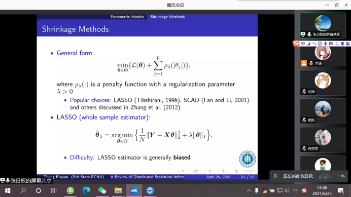 2021年6月25日下午1点30分,我院特邀华东师范大学统计学院院长张日权教授做线上学术报告,报告由红杏视频