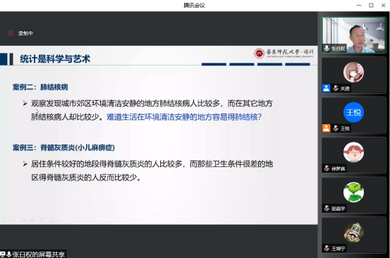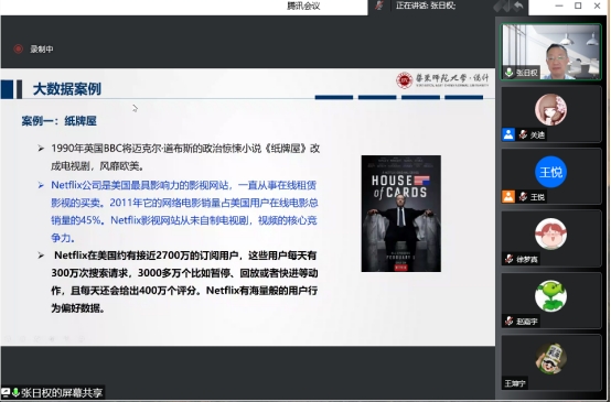 会后,张日权教授与参会师生进行互动,气氛活跃,热情高涨。本次线上报告会有助于全体数统学院师生深入了解统计学与大数据应用的相关内容,讨论了有关于与企业合作项目中遇到的一些问题,同时也详细解答了分布式储存的相关问题。张日权教授的报告开阔了师生的学术视野,拓宽了科研思路,对于红杏视频