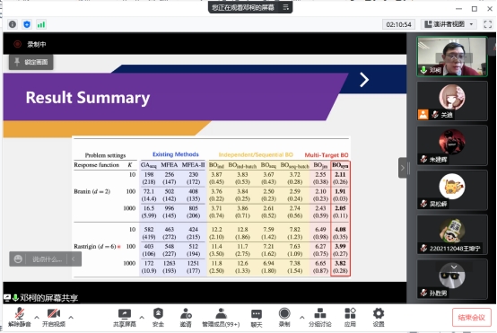 会议过程中,邓教授以介绍超材料的物理特性为背景,讲解如何用计算机在空间下利用微元思想模拟超材料结构的方法,通过精心设计的折射场使得光照或其他情况下实现特殊的物理特性。邓教授通过数学和统计方法把连续的折射场进行离散化,改造微元使得超材料能在既定的条件下有可观测的变化。该项目的意义和应用场景十分广泛,例如在航空航天场景下,卫星的圆弧形信号接收板可以通过上述手段改进成平板形状,从而可以缩小卫星的体积和重量等重要属性。