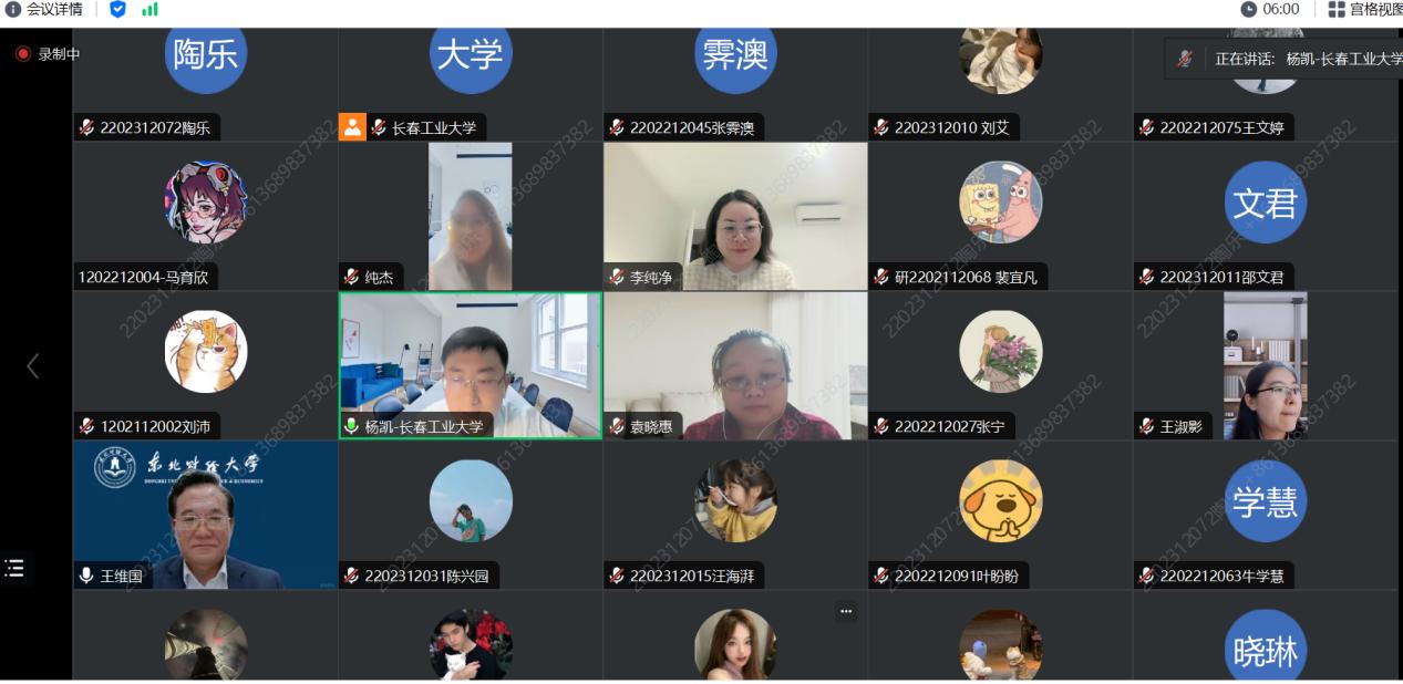 副院长杨凯副教授主持,学院院长王纯杰教授、学院副院长李纯净副教授、学院部分老师、全体研究生参加了本次线上学术报告会。