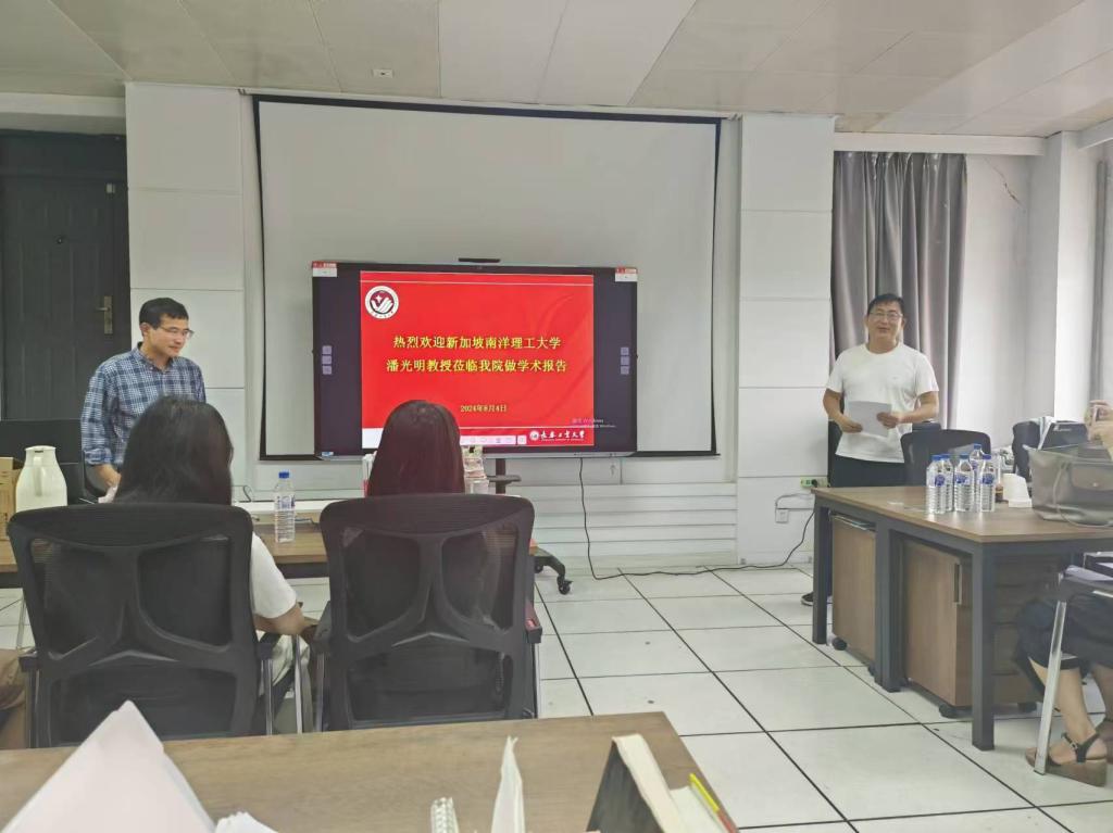 (通讯员:关迪)2024年8月5日上午10:00,新加坡南洋理工大学潘光明教授莅临我院做学术报告,在南湖校区老图书馆四楼左侧研究生5-1学习室进行,报告由红杏视频