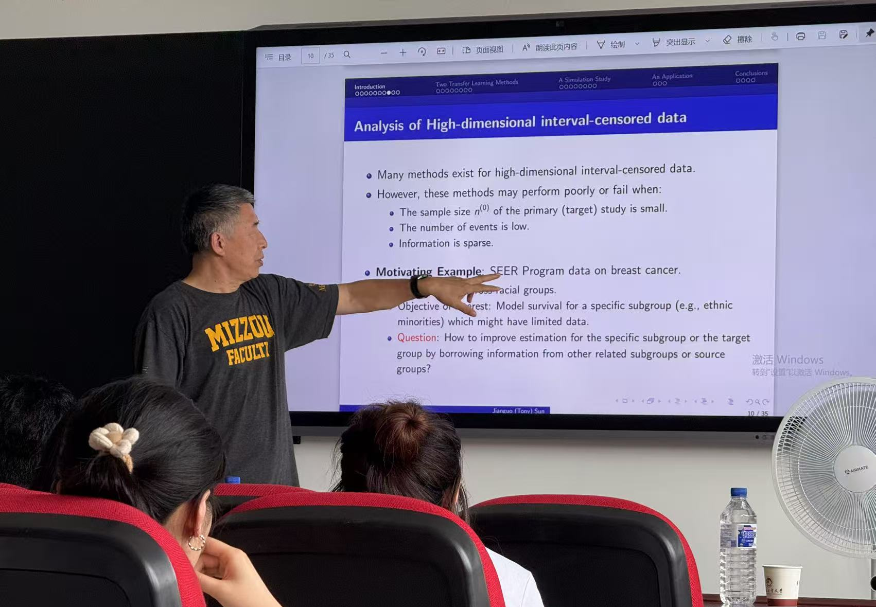 报告人简介:孙建国,美国密苏里大学统计系教授,ASA fellow, IMS fellow and Elected Member of ISl,是区间删失失效时间数据和面板计数数据建模与分析领域的世界领先专家,在这两个领域出版两部英文学术专著。致力于艾滋病和癌症数据研究、双删失数据分析、纵向数据分析和化学计量等方面做了一些开创性的工作,目前已在JASA,JRSSB等国际主流期刊发表高水平SCI论文300多篇,并应邀做了200多场相关学术讲座和学术演讲。目前,担任《Statistics in Biosciences》主编和《Computational Statistics & Data analysis》、《Journal of Nonparametric Statistics》、《Lifetime Data Analysis》和《Statistics in Medicine》等顶级期刊的副主编,担任美国统计学会终身数据科学分会的主席,国际中国统计协会的主席,已培养50多名博士和博士后学生。