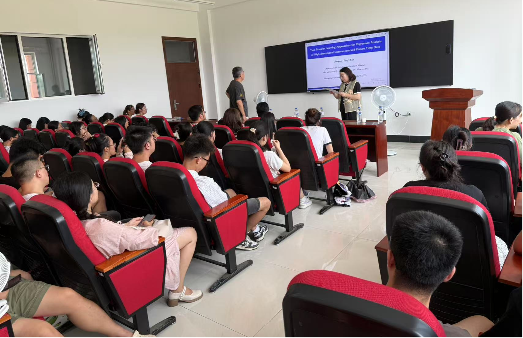 报告会上,孙老师的报告内容研究方向前沿,向大家充分展示了对于高维区间删失失效时间数据处理方法。报告会上,大家都表现出对于该研究方向浓厚的兴趣,报告现场十分融洽。会后,孙老师同大家展开了热烈的讨论,对于大家提出的与该报告会相关的方法问题做出了专业的解答和建议。此次报告会取得的效果斐然,极大的拓宽了学生们的科研视野,充分了解了报告会中相关方向的发展前景。