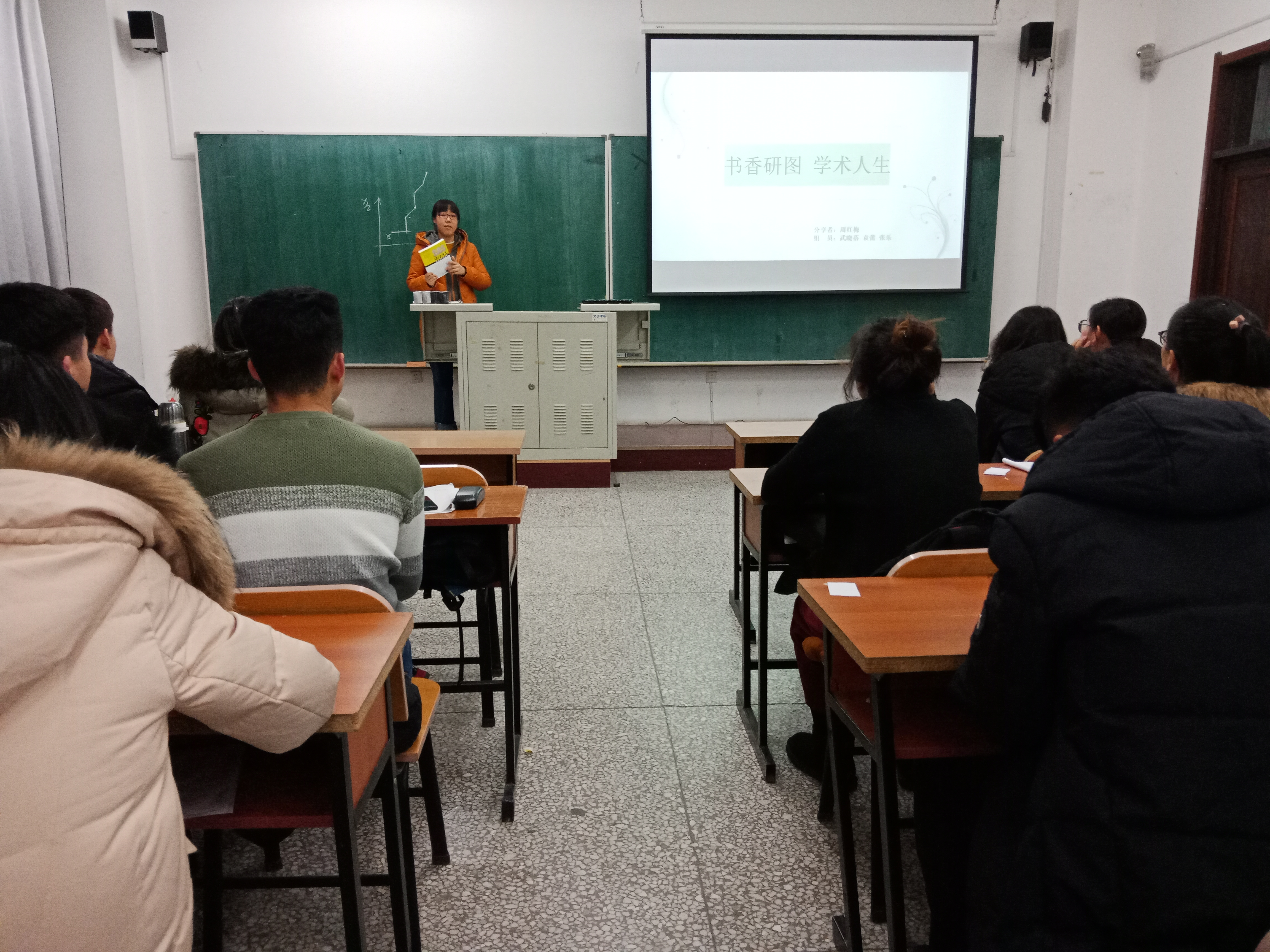 古人说,人可一日不食肉,不可一日不读书。宋朝学者黄庭坚曾说“士大夫三日不读书,则义理不交于胸中,对境觉面目可憎,向人亦语言无味。”可见读书的重要性。为进一步提高我院研究生阅读能力和科研素养,为同学们搭建交流读书体会、分享学科动态的平台,11月28日下午,学院首届“书香研途 学术人生”研究生读书沙龙活动在教学图书楼705教室举办。研究生辅导员应艳老师以及全体2018级研究生参加了此次活动。