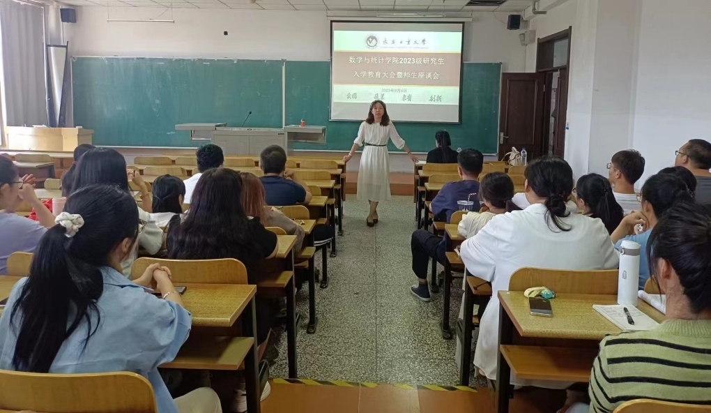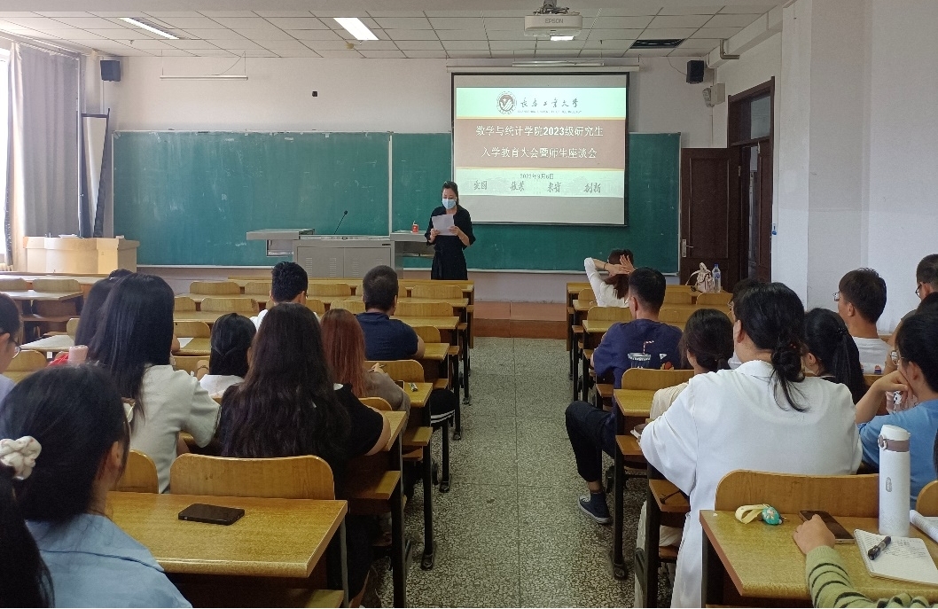 大会伊始,应艳老师介绍了出席本次大会的领导和老师,并对2023级全体研究生表示热烈欢迎。学院副院长兼统计系主任杨凯老师和数学系主任杜润梅老师就学院发展历程、师资队伍和学科概况进行了介绍,两位老师详细介绍了学院学科的研究方向以及在学术科研过程中需要注意的问题。