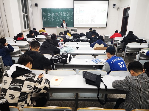 2018级全体本科生在教图楼309教室开展了以“坚决杜绝涉黑涉恶,做文明优秀大学生”的主题班会。