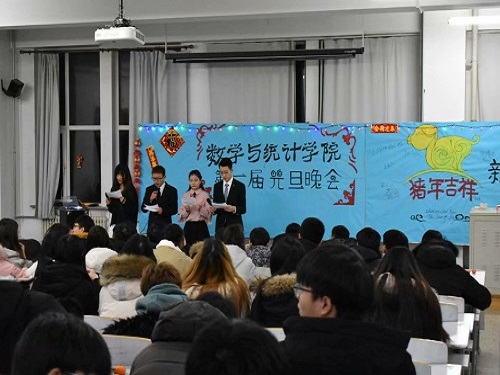 于2018年12月29日下午六点在教图楼201室举办2019年元旦晚会暨2018-2019学年上学期活动颁奖典礼。本次活动由学生会主席马壮、团委副书记崔仕贤、社联主席宋一冉以及16级学生干部出席,大一、大二全体同学参与,17级姜炜彤、田茁,18级牛华义、韩孟雨四人担任主持人。