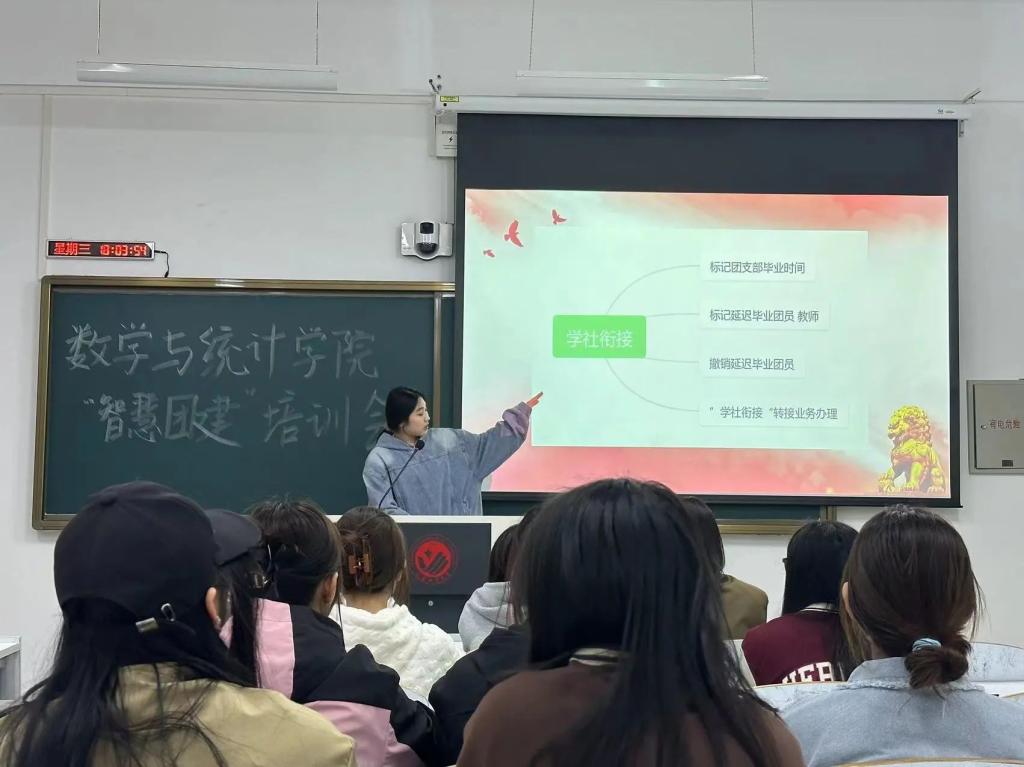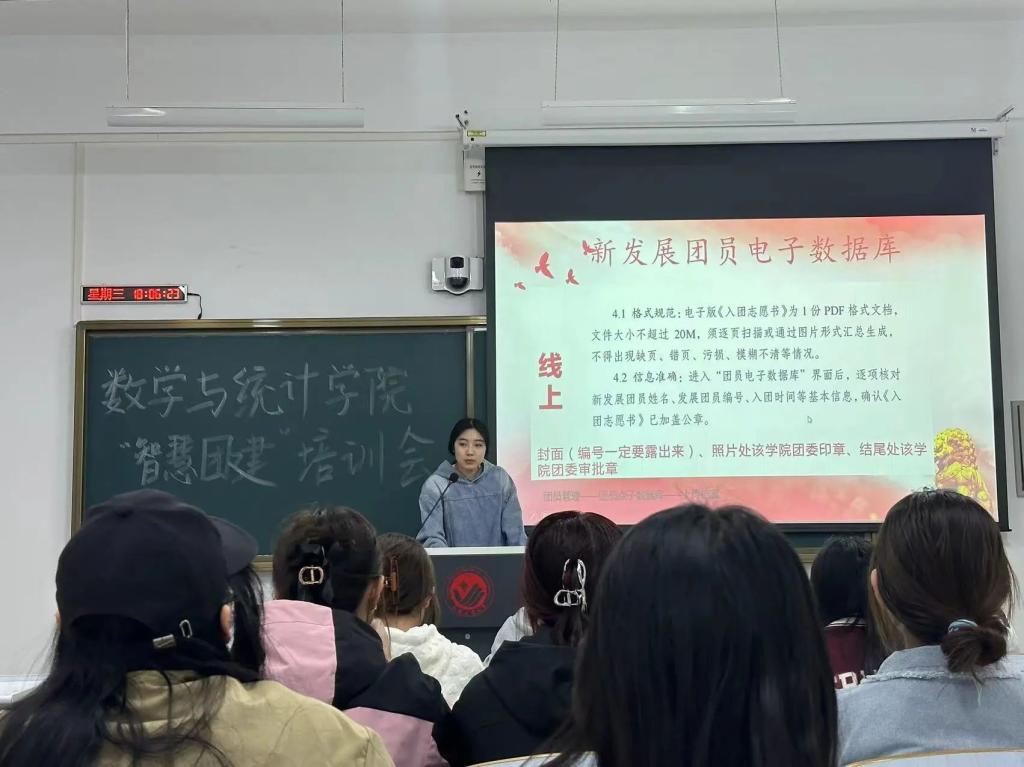团委于2024年4月10日在北湖东区主楼223组织了智慧团建系统操作培训会,主讲人为校团委基层组织建设中心主任齐媛锋,各班团支书参加了本次培训会。