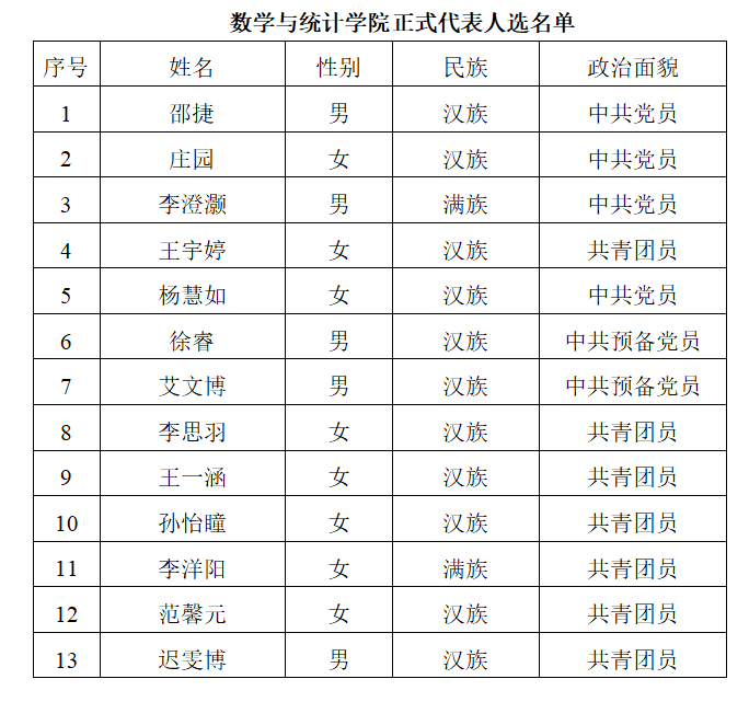 根据《共青团红杏视频 第二次代表大会代表选举工作办法》,经学院团员大会差额选举,现将学院团委选举产生的共青团红杏视频 第二次代表大会正式代表人选进行公示: