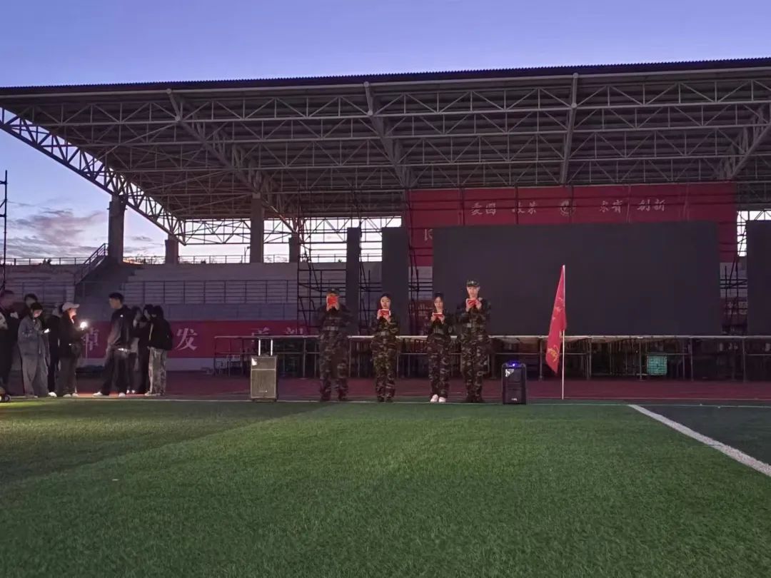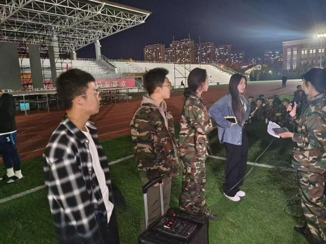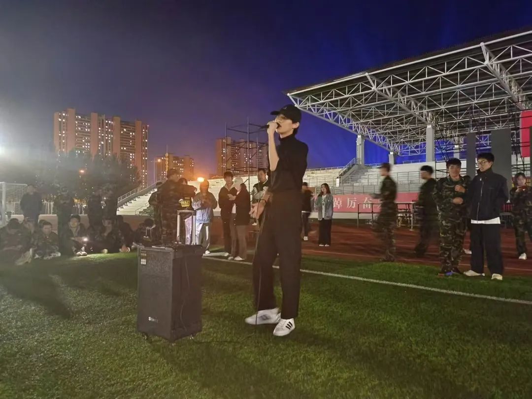 2024级新生军训联欢晚会在北湖东区操场顺利举办,为新生的军训生活再添一抹浓墨重彩。本次晚会由邱昱程、王祎、孙家欣、箭一锋担任主持,全体新生参加。