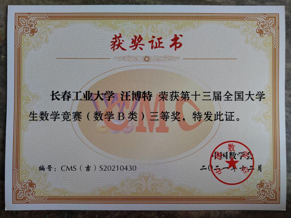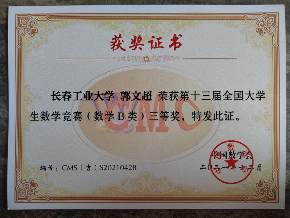 2021年全国大学生数学竞赛获奖
