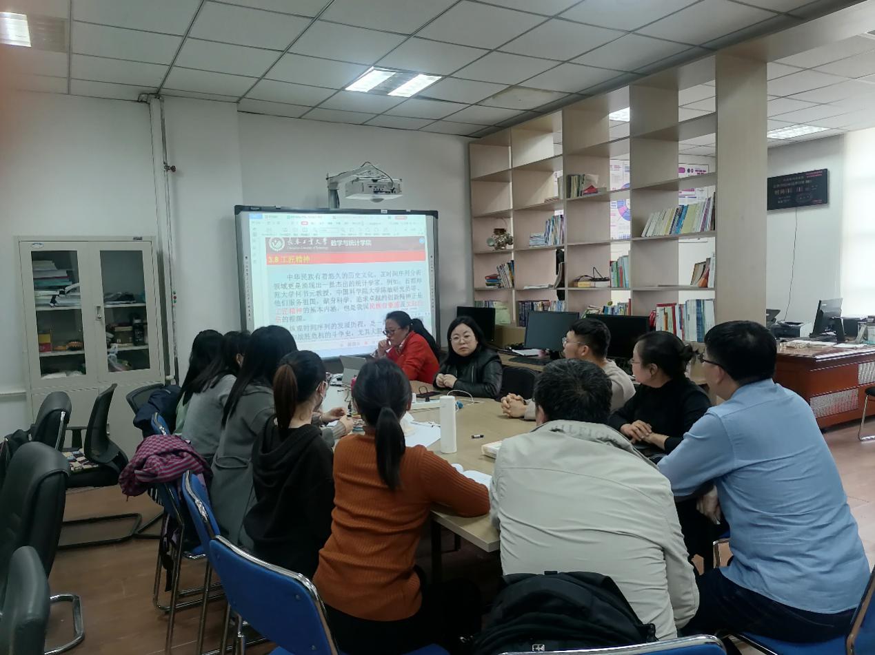 关于课程思政的相关文件精神,构建课程思政的育人大格局,切实把立德树人落到实处,2020年10月21日,我院统计系全体教师在新图书馆615室召开课程思政建设主题研讨会,学院徐平峰副院长、李纯净副院长以及统计系全体教师参加了本次会议。会议由系主任杨凯老师主持,统计系全体教师围绕如何讲授思政课程,如何实现课程思政,如何提炼思政元素等内容进行了热烈讨论和交流。