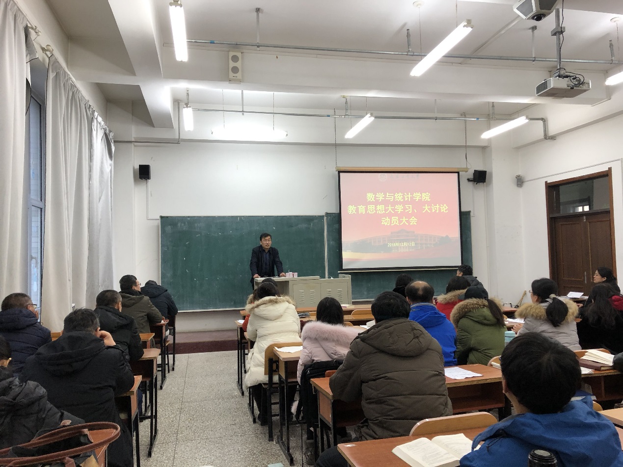 最后,张明耀做了讲话。他首先强调全国教育大会的召开,开启了新时代我国教育事业改革发展的新征程,也为学校教育事业带来了新的机遇和挑战。并对本科教育的内涵进行了深入解读,通过对美国麻省理工学院举例,深入浅出地说明,本科教育办学的成功之处关键在于教书育人,做好知识传承。同时,希望大家今后要多倾向、多关注国家本科教育出台的相关措施,明确作为一个教师应该做什么的问题。通过本次教育大学习讨论,找到与本科教育的差距,对学校、学院相关措施提出意见。并鼓励全体教师要以学院获得统计学博士点授予权为契机,全力做好科研工作,把学院科研迈向一个新阶段。