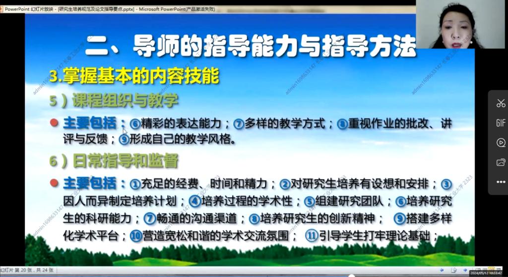 2024512日上午830分,第一期培训班在线上如期举行,学院副院长杨凯副教授主持会议,学院全体研究生指导教师参加了本次培训。本次培训由浙江大学李丹青老师讲述研究生培养规范及论文指导要点。