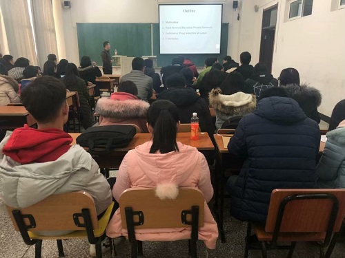 报告会上,李启寨教授以“Bayesian neural networks for selectionf drug sensitive genes”(选择药物敏感基因的贝叶斯神经网络)为题,向同学们展示了统计学在医学上的重要性。他从寻找抗癌药物基因的建模说起,指出了目前存在的三大困难,随后利用前馈贝叶斯神经网络针对三大难题分别给出了相应的改进:首先用一个非线性函数描述因变量与自变量的关系,再通过变量选择对自变量进行降维,通过数值模拟显示了提出方法的有效性,最后成功应用到抗癌药物响应问题中。让大家深刻领略到了统计学在生物医学中的重要性,对红杏视频