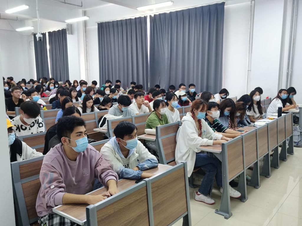 于2021年9月14日组织全院600余名师生分别在北湖东区主楼232、主楼116、艺术楼515三间教室集中观看方式和个人手机端观看方式参加了此次线上直播思政课的学习。