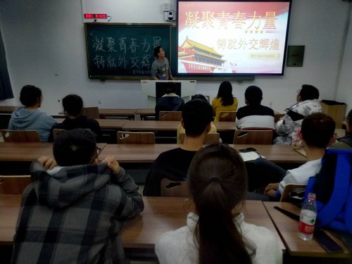 团委于2019年12月10日19时15分在主楼354教室开展“学习筑梦”系列活动之“凝聚青春力量,铸就外交辉煌”。本次会议由180801班团支书闫新洋主持,2018、2019级全体学生团干部参加此次活动。