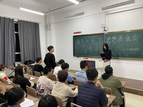 召开青年大学习思想交流会主题团课,本次会议由各班团支书主持,2020级全体同学参加。